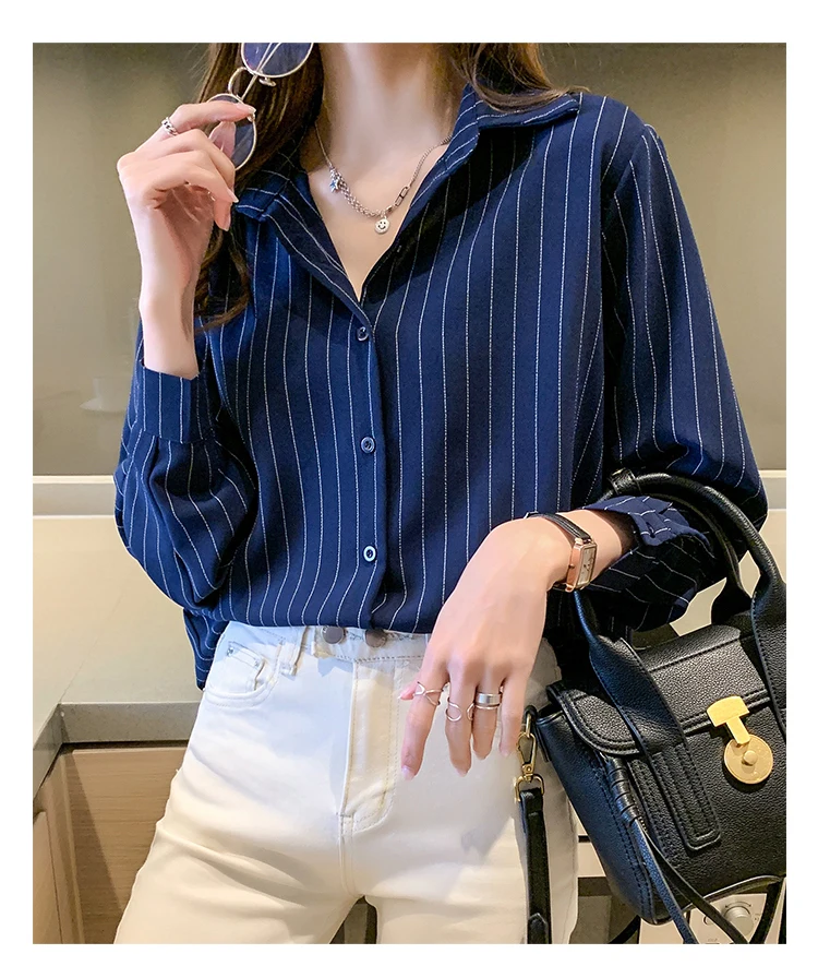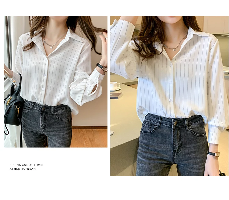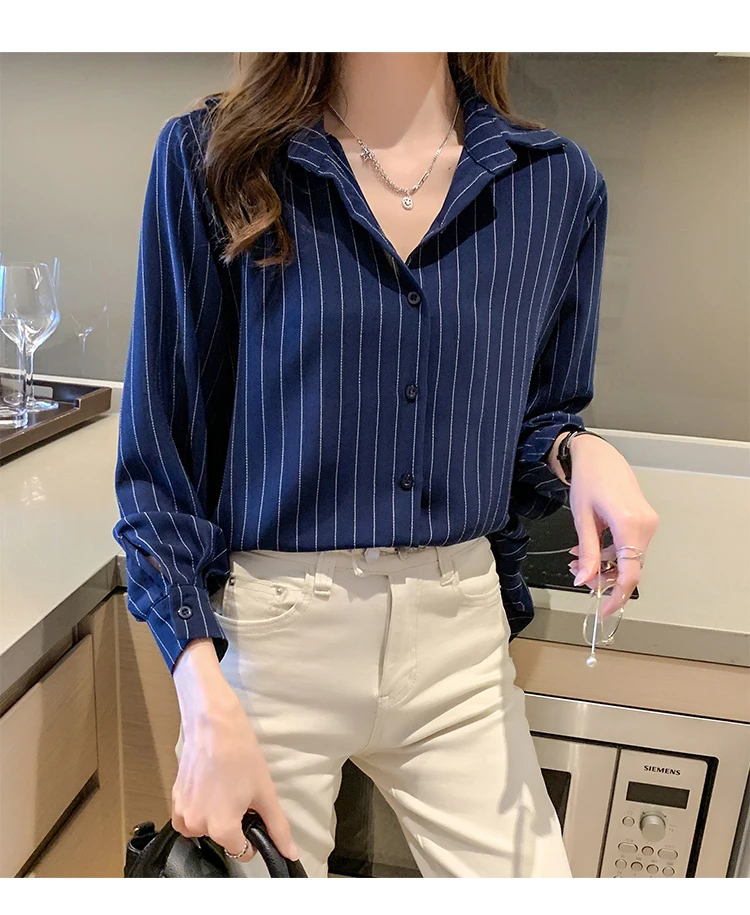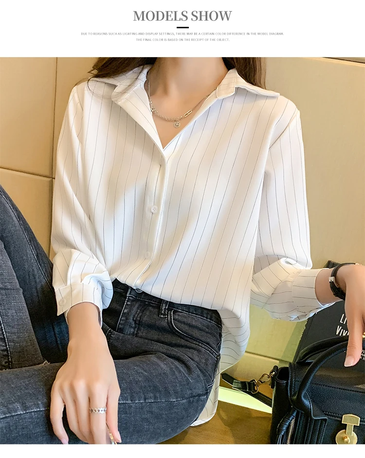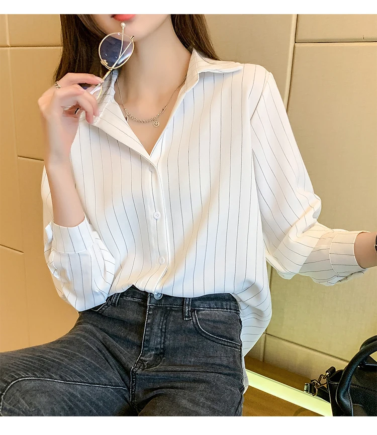Fashion Woman Blouses 2025 Chiffon Long Sleeve Shirt Tops Woman White Blouse Shirts Striped Top Pretty and Cheap Women'S Blouses