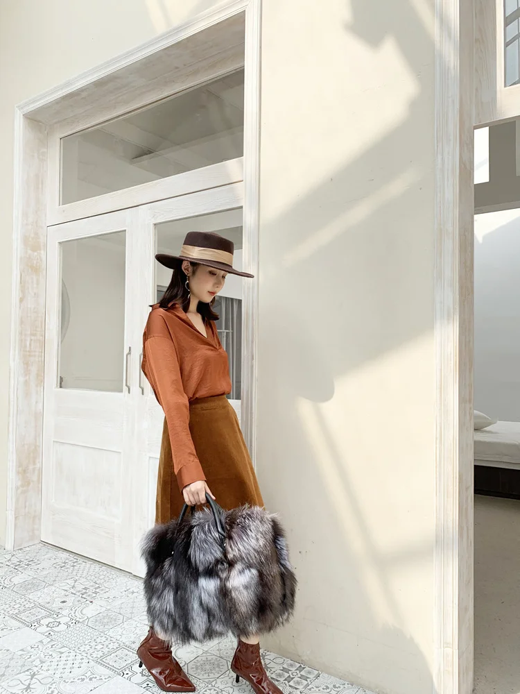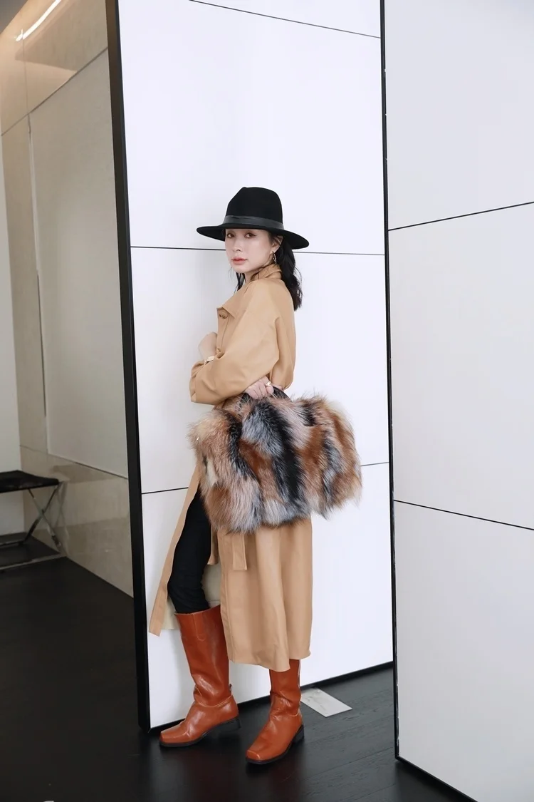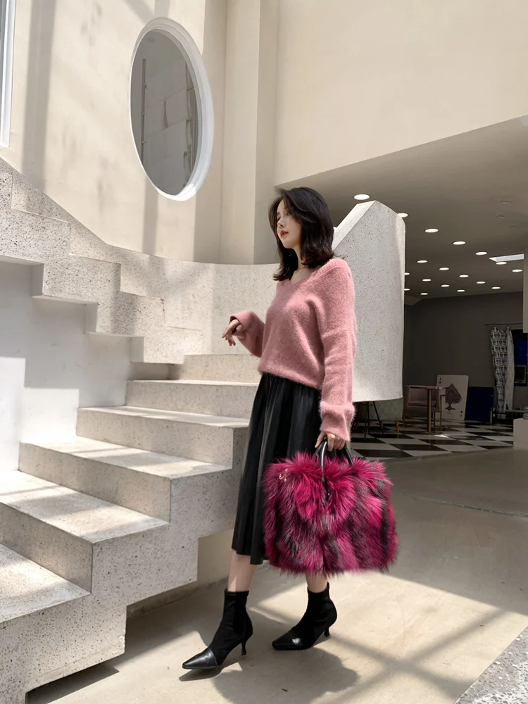 Real Fox Fur Bag Woman Big Bag Ladies Crossbody Bags Designer Luxury Handbags Women Handbag Shoulder Bag Fluffy Tote Bag Fuzzy